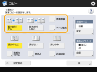 両面原稿を製本コピーする場合は<両面原稿>を押し、原稿に合わせて<左右開き>か<上下開き>かを選んでください。