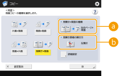 <左開き原稿>または<右開き原稿>を選び、<OK>を押す