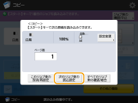 倍率や濃度などの設定のみを変更して原稿の読み込みを継続する場合は、表示される画面で<設定変更>を押して設定を変更し、手順7に進んでください。