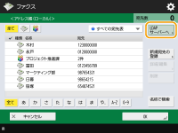 ファクスの基本画面で<その他の機能>  <発信人>を押すと、登録された発信元の名前から発信元情報に付ける名前を選ぶことができます。<発信人の名称登録>