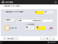以下の場合は本設定は自動的に<OFF>へ設定が変更されます。必要に応じて宛先を再指定したり、設定を<ON>に戻したりしてください。