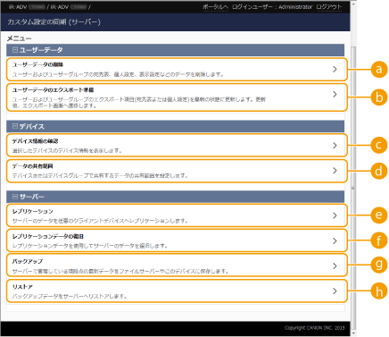サーバーのデータを管理するために他のキヤノン複合機に定期的に複製データを作成したり、サーバーデータをバックアップすることができます。