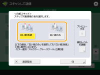 <カラー選択>で<自動(カラー/白黒)>または<自動(カラー/グレー)>以外を選択している場合は、<白い紙のみ>を設定しても<白い紙/色紙>と同じ動作になります。