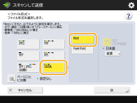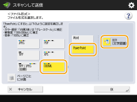<PDF>または<XPS>を選択した場合、<高圧縮>と<OCR(文字認識)>と組み合わせて設定できます。送信画面では<PDF(高圧縮)>または<XPS(高圧縮)>と表示されます。