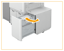 「PODデッキライト・C」「ペーパーデッキユニット・E」の側面に用紙がつまっているか確認する