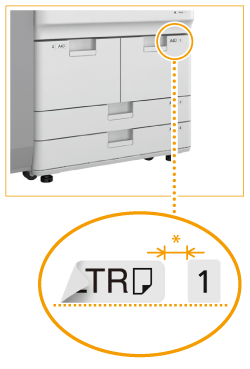 Attach the paper size label at the same height as the cassette number indicator, and approximately 1/4" (5 mm) to the left.