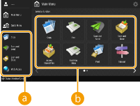 When you press , the Main Menu is displayed, and a list of function buttons is shown. The Main Menu displays a list of function buttons. You can change the functions for these buttons or rearrange their positions so that you can easily choose frequently used functions or hide functions not used often. Customizing the Main Menu