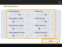 Impostare ciascun suono di conferma/avvertimento e premere <Chiudi>.