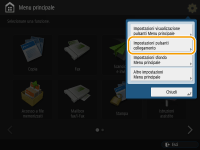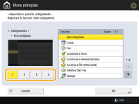 È possibile creare un pulsante di scelta rapida per le funzioni nella schermata <Menu principale>. Usare questo pulsante per accedere a una funzione diversa senza tornare alla schermata <Menu principale>. Per creare una scelta rapida, eseguire l'accesso con i privilegi di amministratore. Accesso alla macchina
