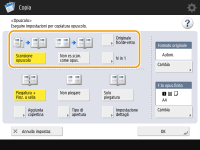 Quando si effettua la copia di opuscoli con originali fronte-retro, premere <Originale fronte-retro> e selezionare <Tipo libro> o <Tipo calendario> come opportuno.
