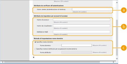 Inserire la stringa di caratteri registrata nell'attributo specificato in [Attributo utente da cercare:]. Per impostare i privilegi basati sul gruppo a cui appartiene l'utente, inserire il nome del gruppo.