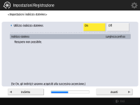 La Guida all'impostazione non può essere avviata nei seguenti casi.Se è impostata l'autenticazione utente o l'autenticazione ID divisione. Se è impostata l'opzione Autentica ID divisione. Se viene effettuata l'autenticazione con scheda. |