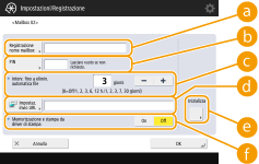 Premere <Impostazioni funzione>  <Memorizzazione/Accesso a file>  <Impostazioni mailbox>  <Impostazione/Registrazione mailbox>.
