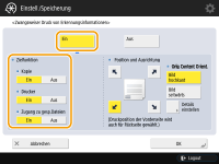 Drücken Sie unter <Zielfunktion> auf <Ein> für jede Funktion, an der Sie diese Einstellung anwenden möchten.
