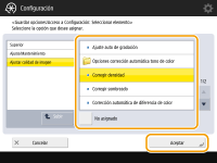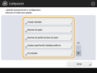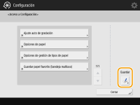 Se pueden registrar accesos directos para los ajustes que se muestran al pulsar  (Configuración), en la opción <Acceso directo Configuración> del Menú principal. Eso permite visualizar rápidamente incluso los ajustes que se configuran en un nivel profundo de la jerarquía de menús.