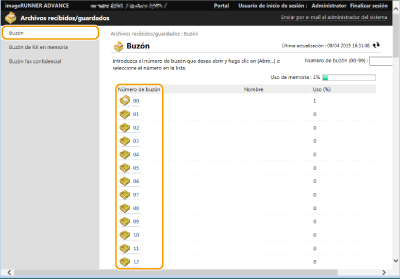 En la página [Buzón], haga clic en el número del Buzón de correo deseado.