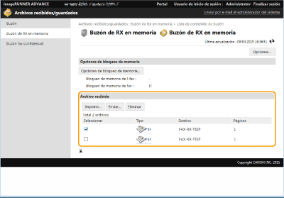 Gestionar documentos almacenados temporalmente en el Buzón RX de memoria
