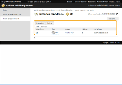 Gestionar documentos almacenados temporalmente en el Buzón de fax confidencial