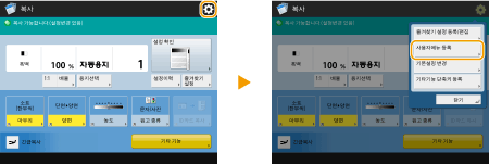 (시작)를 누르지 않고 사용자메뉴의 버튼을 누를 때 복사가 시작됩니다.