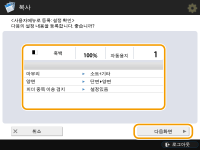 복사 설정을 지정합니다. <메인 메뉴> 화면