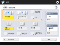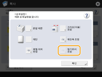 양면 원고로 소책자 복사를 수행하는 경우, <양면원고>을 누르고 필요에 따라 <좌우열기> 또는 <상하열기>를 선택하십시오.