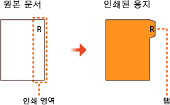 탭에 인쇄하는 경우, 원고를 다음 그림과 같이 배치하십시오. 탭 영역에 불필요한 문자나 이미지를 배열하지 마십시오. |