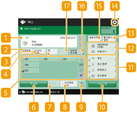 주소록 사용을 제한하여 주소록과 원터치 버튼을 숨길지 여부를 선택할 수 있습니다. <주소록 사용 제한>일부 기능은 함께 조합하여 사용할 수 없습니다. 선택할 수 없는 버튼은 연한 회색으로 표시됩니다. 지정된 총 수신인 수는 화면 오른쪽 상단에 표시됩니다. |