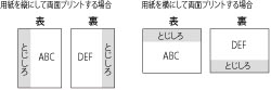 両面プリントの場合は、「とじ方向」の設定に応じて裏面のプリントの向きが異なります。