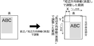 設定値で指定した値だけ、表面の印字位置を横方向または縦方向にずらして調整します。