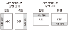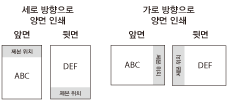 이 매개변수를 통해 펀치 위치를 용지의 긴 가장자리 또는 짧은 가장자리 중 어느 곳으로 할 지 결정합니다. 양면 인쇄물을 펀칭하여 제본하는 경우 레이아웃이 올바르게 되도록 이미지 방향이 자동으로 조정됩니다.