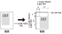 뒷면의 인쇄 위치를 수직 또는 수평 방향으로 조정하여 설정값에서 지정한 값에 맞춥니다.