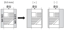 설정값을 증가시키면 용지에서 오른쪽 X 방향으로 이미지가 이동합니다. 설정값을 감소시키면 용지에서 왼쪽 X 방향으로 이미지가 이동합니다.