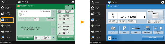 <メインメニュー>画面に表示されている機能のショートカットを作成することができます。他の機能を操作している途中でもショートカットが表示されていれば、<メインメニュー>画面に戻ることなく機能を呼び出すことができます。なお、ショートカットを作成するには、管理者としてログインする必要があります。
