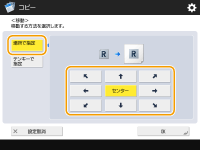 両面コピー時にウラ面の画像も移動させたい場合は、<ウラ面>の設定が必要です。オモテ面と同じ位置に移動する場合は<オモテ面と同じ>を押し、左右対称に移動する場合は<オモテ面と反対>を押します。オモテ面と異なる位置に移動させたい場合は、<設定>を押して移動距離を入力します。