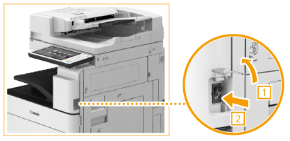 Die im Gerät gespeicherten Daten können beschädigt werden, wenn unmittelbar vor dem Ausschalten des Geräts auf Erweiterter Platz (freigegebener Speicherplatz im Gerät) von einem anderen Canon-Multifunktionsdrucker* oder einem Computer aus zugegriffen wird.