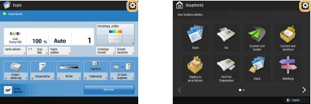 Drücken Sie die Funktionstasten auf dem Bildschirm <Hauptmenü>, um den Grundfunktionsbildschirm aufzurufen, wo Sie auf grundlegende Funktionen wie Kopieren, Faxen und Scannen zugreifen können. Obwohl sich die angezeigten und einstellbaren Elemente auf dem Grundfunktionsbildschirm je nach Funktion unterscheiden, können Sie die Einstellungen ändern, um sie an Ihre Bedürfnisse anzupassen. Anpassen des Grundfunktionsbildschirms