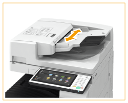 Wenn Sie großformatige Dokumente platzieren, ziehen Sie die Erweiterung des Fachs für die Originalzufuhr heraus, um zu verhindern, dass sie über den Rand der Zufuhr rutschen und herunterfallen.