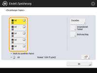 ![]() Wenn Sie das häufig verwendete Papierformat auf Tasten <S1> bis <S5> registrieren, können Sie diese dann per Tastendruck aufrufen. Registrieren von Papier in Sonderformat (Anwenderdefiniertes Papierformat)