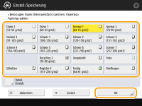 Um Papier in einem unbekannten Format zu registrieren, wählen Sie <Sonderformat>.
