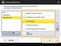 Wählen Sie die Einstellungen, die als Verknüpfung registriert werden sollen, und drücken Sie auf <OK>.
