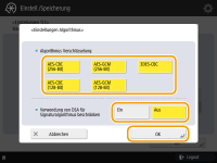 Wenn Sie <Verschlüss.meth.für FIPS 140-2 formatieren> auf <Ein> setzen, erfolgt die TLS-Kommunikationsverschlüsselungsmethode gemäß den von der Regierung der Vereinigten Staaten genehmigten FIPS (Federal Information Processing Standards) 140-2. <Verschlüss.meth.für FIPS 140-2 formatieren>