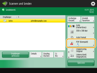 Durch das Festlegen eines Passworts beim Scannen eines Originals können PDF-Dateien für den Sende- oder Speichervorgang verschlüsselt werden. Das Festlegen eines Passworts senkt das Risiko, dass andere Personen die PDF-Dateien anzeigen oder bearbeiten können.