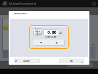 Si vous exécutez de l'impression Piqûre à cheval à l'aide du module de finition P.A.C. optionnel et que vous notez que les plis du papier ne se situent pas exactement au milieu de la brochure, il est possible de faire des réglages pour compenser cette erreur. Réglez la position de pliage du papier et la position de piqûre à cheval en même temps.
