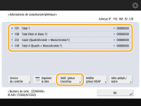 Le nombre de pages est comptabilisé dans <Lecture noir et blanc (Total 1)> ou <Lecture couleur (Total 1)>.