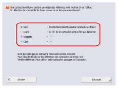 Appuyez sur <Ignorer l'erreur> pour passer l'impression pour laquelle une erreur est survenue. Toutefois, les données pour lesquelles une erreur s'est affichée ne seront pas imprimées.