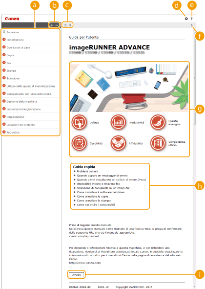 Fare clic per visualizzare informazioni su come visualizzare l'Guida per l'utente, come effettuare una ricerca e altre informazioni.