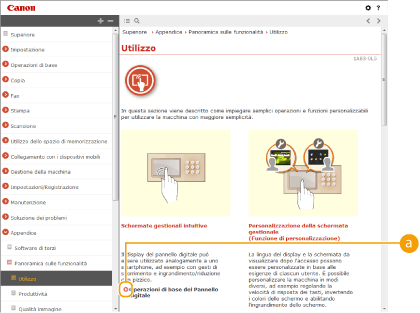 Layout della schermata di Guida per l'utente