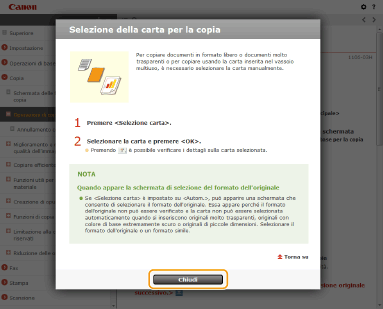 Quando si fa clic sull'icona, la pagina corrente potrebbe oscurarsi e potrebbe apparire una finestra a comparsa. Per tornare alla pagina, fare clic su [Chiudi] nella finestra a comparsa.