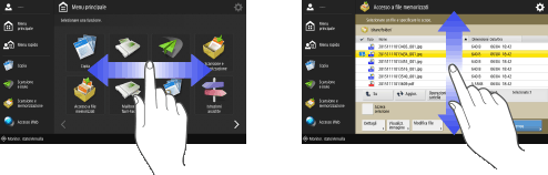 Utilizzare come se si trattasse di uno smartphone (scorrere/pizzicare)Su alcune schermate, come il Menu principale e il Menu rapido, è possibile cambiare pagina o scorrere sullo schermo con il dito verso l'alto/il basso o verso sinistra/destra come se si trattasse di uno smartphone.