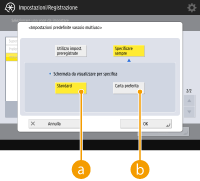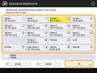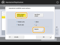 ![]() Se si registra il formato carta usato frequentemente sui pulsanti da <S1> a <S5>, è possibile richiamarlo tramite la pressione di un solo tasto. Registrazione della carta di formato libero (carta di formato personalizzato)